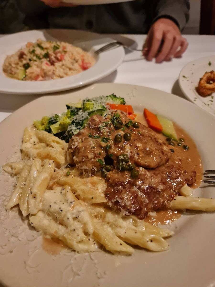 The menu showcases a range of traditional pasta dishes alongside options like Chicken Marsala, Veal Piccata, and seafood preparations that often draw praise for their fresh flavors and balanced richness. Diners frequently mention the creamy textures of dishes like Fettuccine Alfredo with Chicken and the hearty satisfaction of their Spaghetti Bolognese. The inclusion of house touches such as freshly baked bread served with an olive oil dipping sauce sets a welcoming tone from the start of the meal.